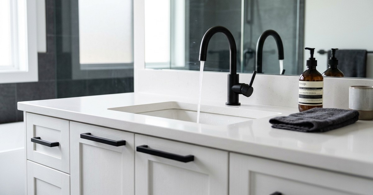 This small change provides an instant modern update, giving your vanity and shower a cohesive, polished feel. It’s a fantastic DIY bathroom upgrade that adds significant visual impact.