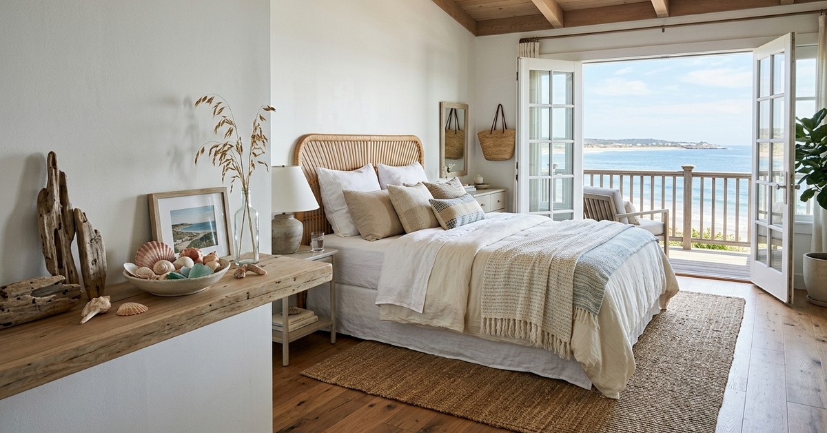 Focus on natural textures: a woven jute rug underfoot, a rattan headboard, and lightweight cotton or linen bedding. Incorporate subtle nautical touches with driftwood accents or a delicate shell collection displayed on a simple shelf.